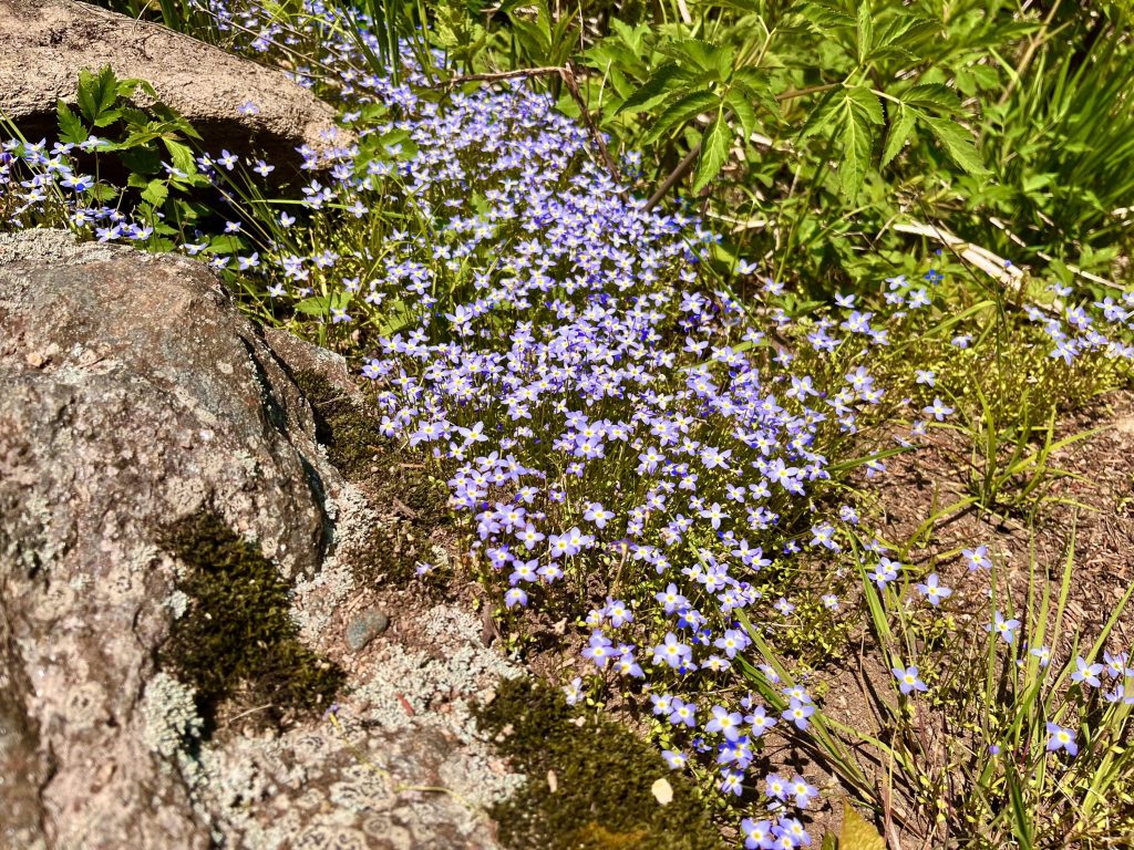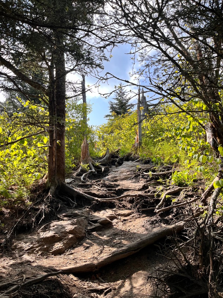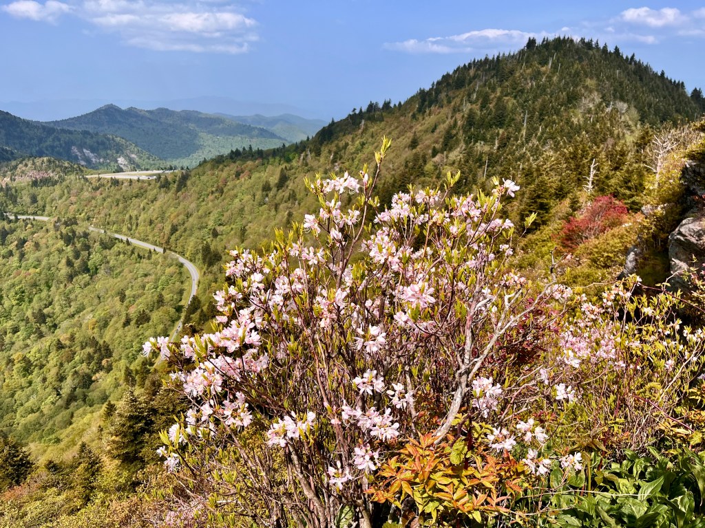 Thursday I returned to Waterrock Knob with a different group of hikers to accompany me on this challenging and technical hike. Once again, the sky was blue and the sun shining. The views were beautiful as before but this time there was more haze in the air restricting the clarity of the ridge lines in the distance. There were different blossoms showing off their grandeur than just two weeks prior. The steep parts of the trail offered a good workout to all my muscle groups and challenged my balance. We visited the downed plane wreckage again and felt the sacredness of this mountain shrine to two men who lost their lives on this mountain. So, another week of getting ready has come and gone and now to enjoy a holiday weekend.